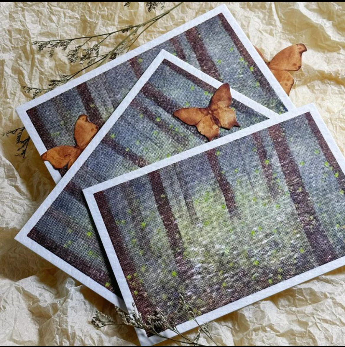 Cartolina dipinta a mano con cielo stellato e farfalla